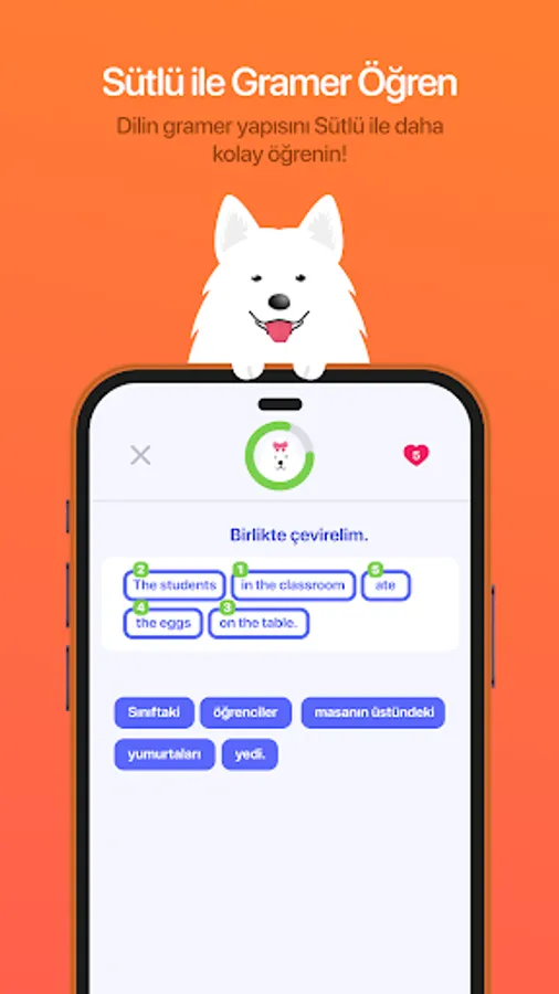 Sütlü is a cute, friendly and playful character. He's a bit naughty but specializes in teaching grammar rules. Sütlü is a complete source of entertainment for those who want to have fun while learning a language.