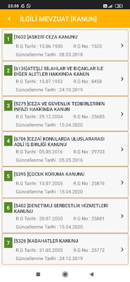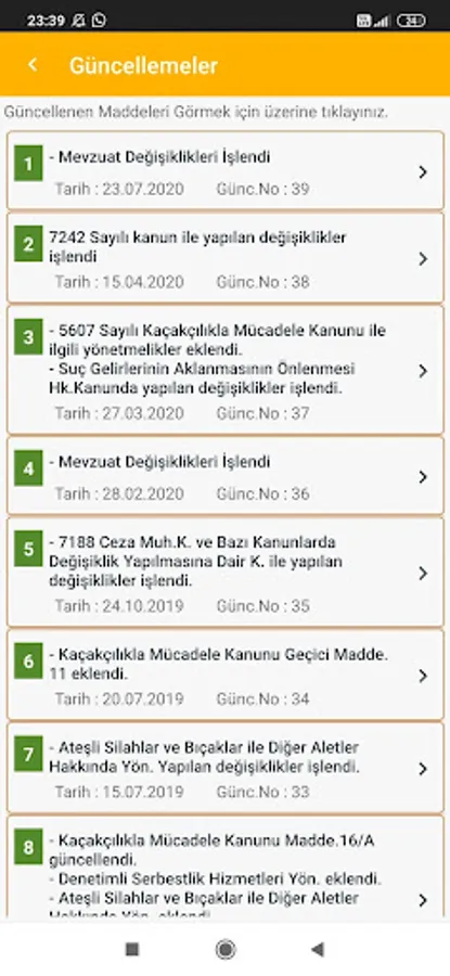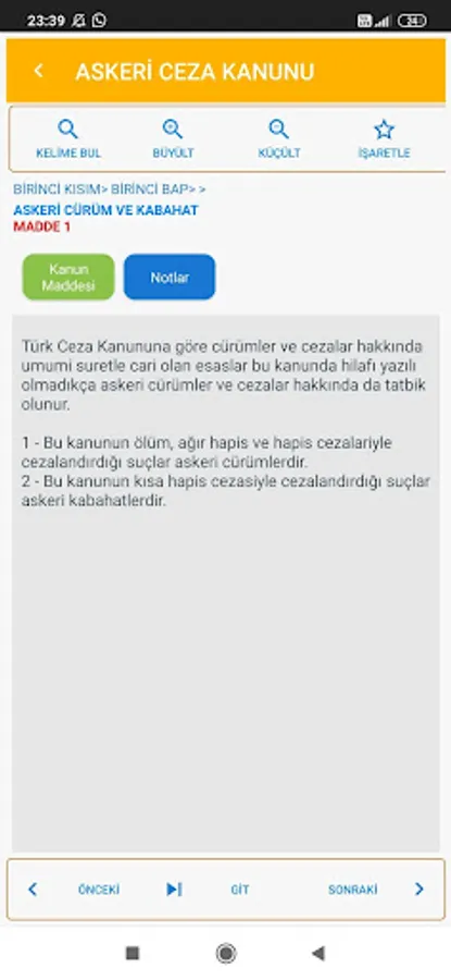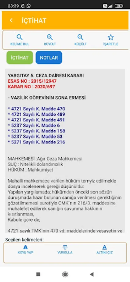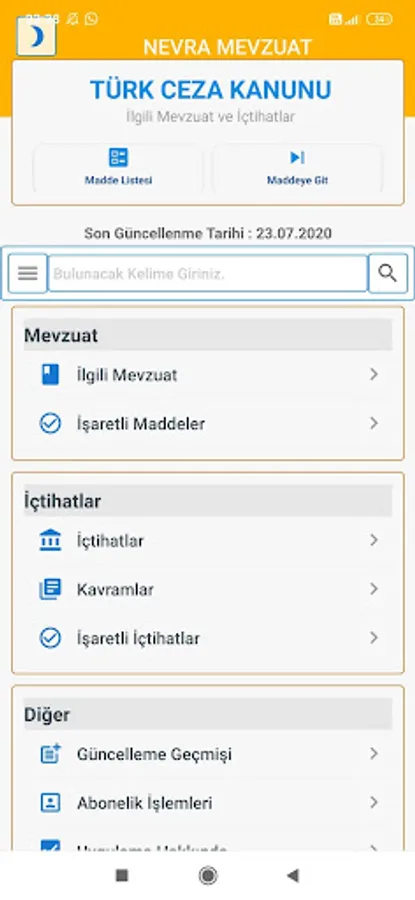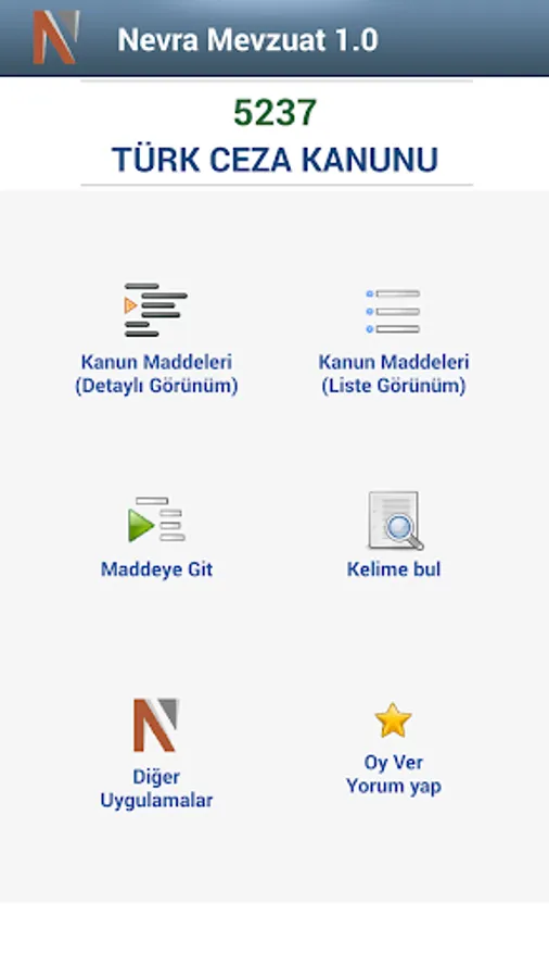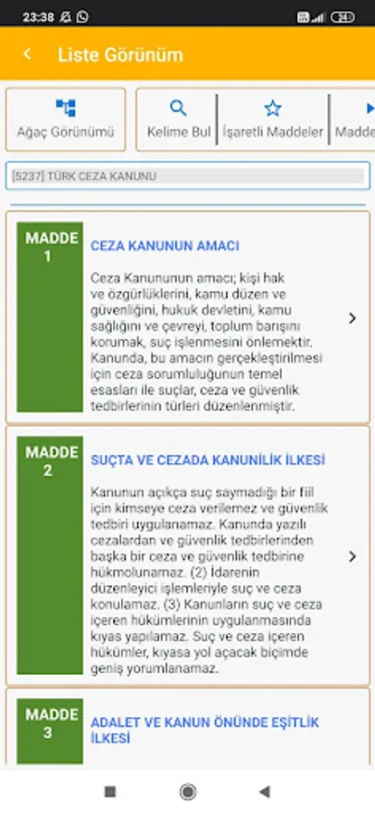 The Turkish Penal Code Articles are included in the application as a list and detailed view.