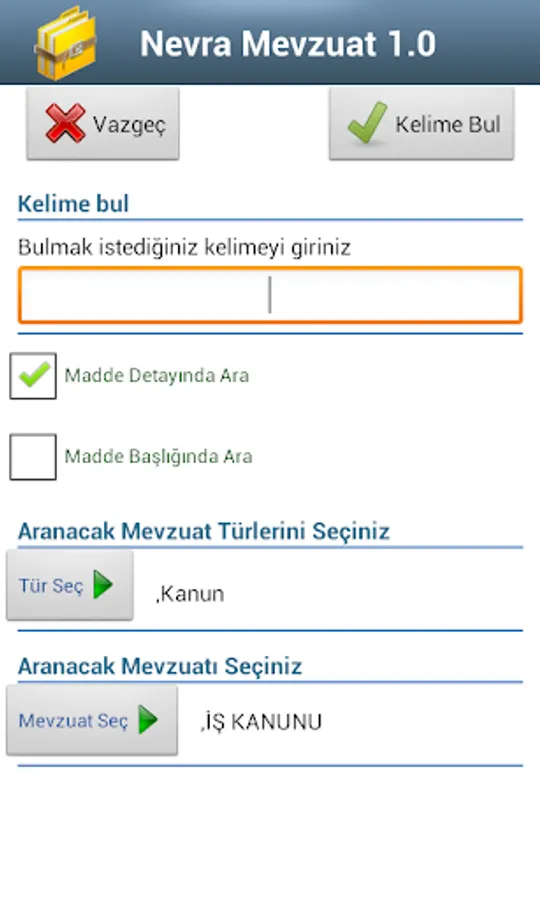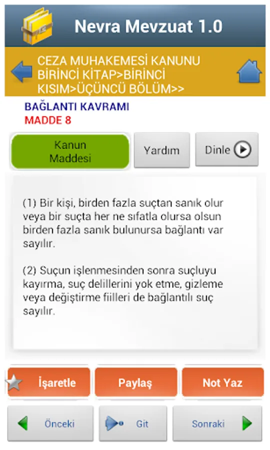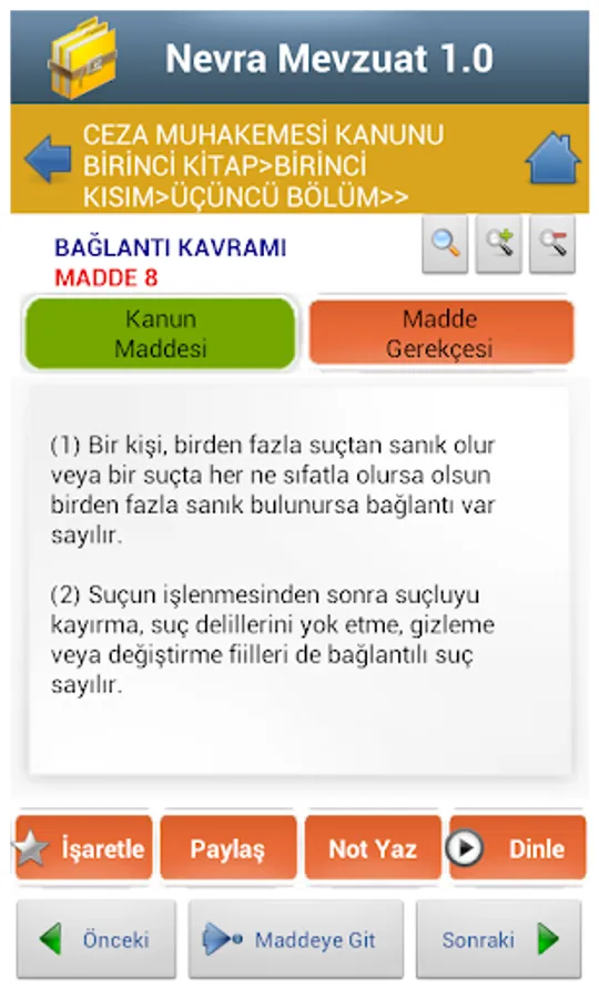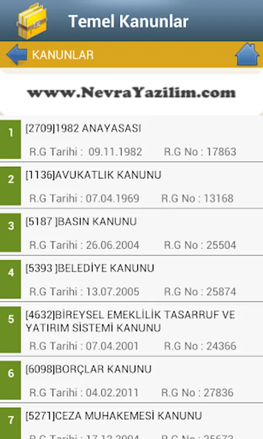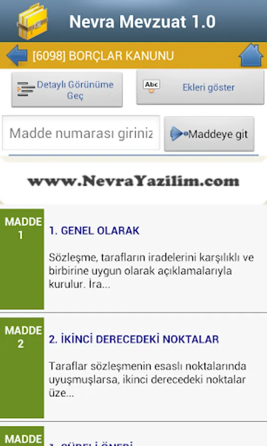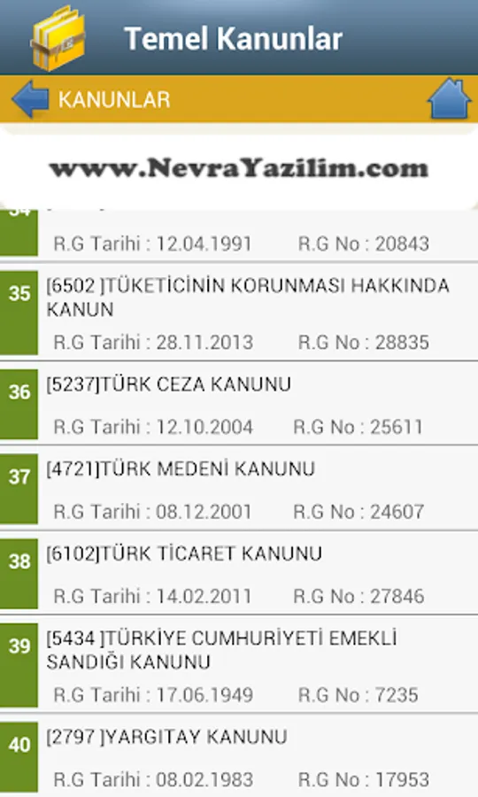 There are 40 basic laws in the application. You can reach jurisprudence associated with the legal provisions.
