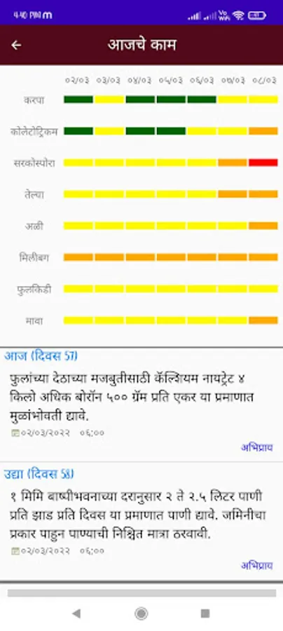 Crop advisory: contains advisory information based individual member’s area climate, crop, age of crop, topography and geology, irrigation facilities available and adopted, soil type, disease control and curative methods and practices pertaining to the above so as to avoid repetitive occurances based on microbial life patterns and adaptation siginificant in the vicinity.
