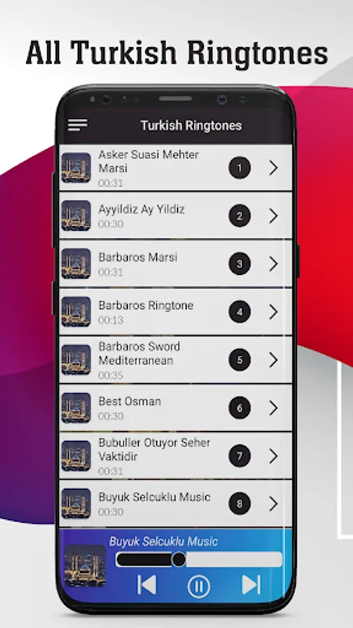 Easy to use best Turkish ringtones application for everyone. Set ringtones in just seconds. Install now the original Turkish ringtones app that is well designed and included the best caller tunes from the top Turkish seasons. You will love to listen and set caller tune on your device. Original ringtones collection. Easy to use top Turkish ringtones app. We have in this new Turkish ringtones app the most favorite ertugrul ghazi ringtones, Kurulus Osman Ringtones, Yunus buyuk ringtones, yunus emre ringtones and much more from trending seasons. Download now free Turkish caller tunes app. Also included a best collection of ottoman empire ringtones. Download Ringtones for android free.