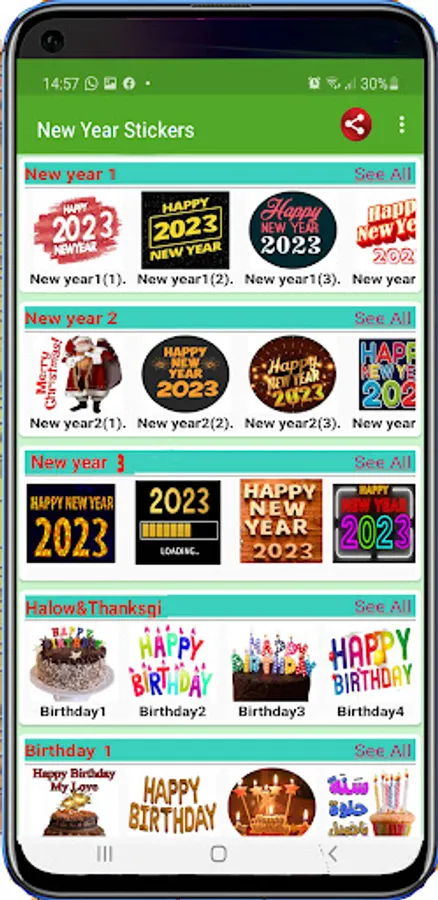 This app contains a large collection of packs of Happy New year stickers 2023 for Whats and Happy birthday stickers.