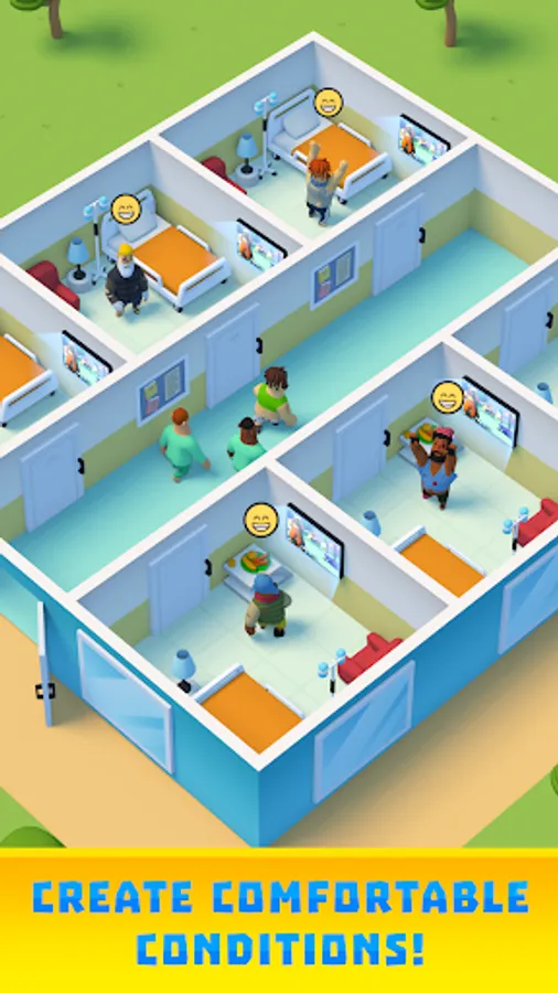 Help to heal and release your patients. The more patients you rehabilitate, the more money you get. Don't forget that in idle tycoon games, your main goal is not only to help, but also to get rich!