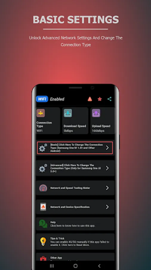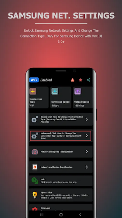 If your phone has 5G/4G Hardware then you can enable both of them. This app will help you to open a secret menu where you can select your desire network. Now you can open Samsung network settings using this application.