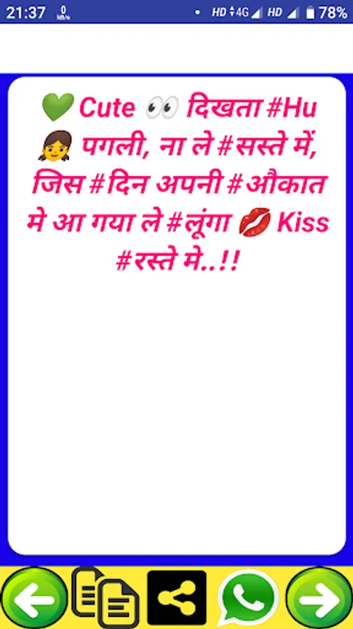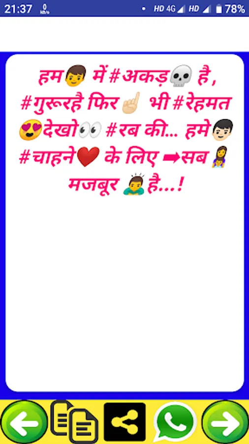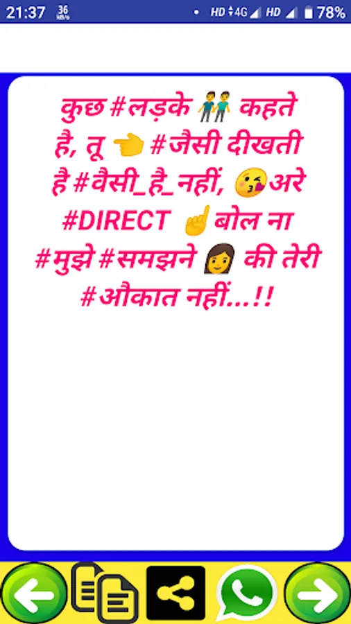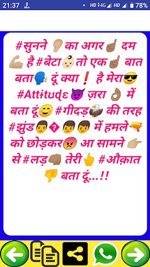 👉 Attractive texts with emoji: WhatsApp Status with emoji looks pretty cool attitude status for boys. So we added love attitude status for WhatsApp Hindi with emoji.