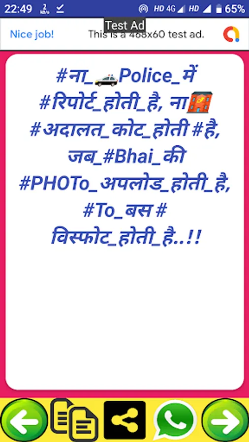 In this app you can easily copy ,paste the status that you like most for your social profile.