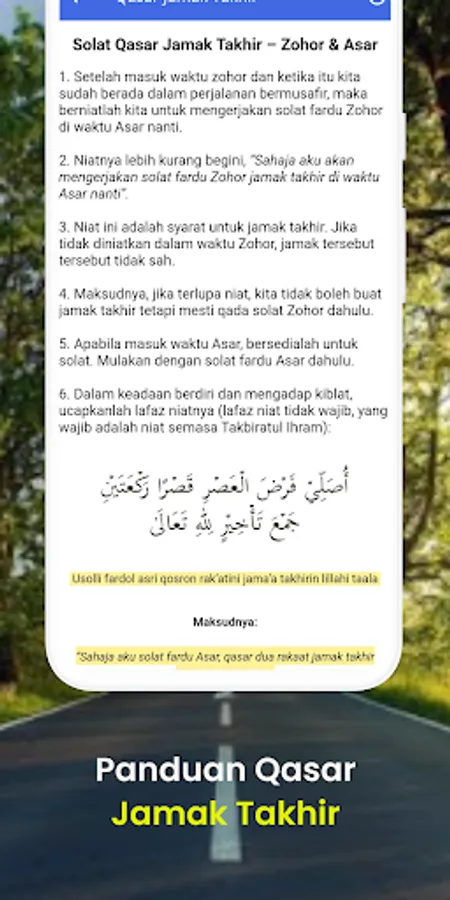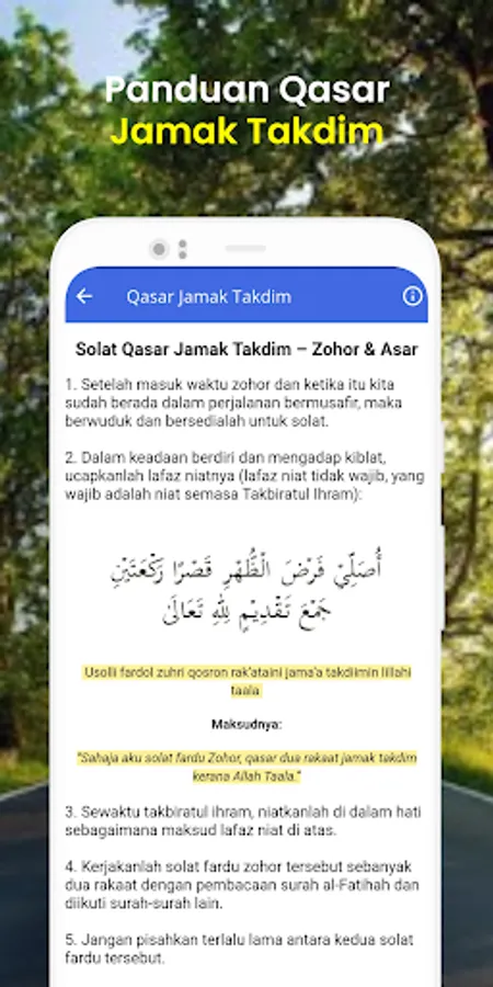 This Complete Qasar Prayer Guide application is built using Malay language and an easy -to -understand format. It's simple, compact and neat to take anywhere in YOUR smartphone.