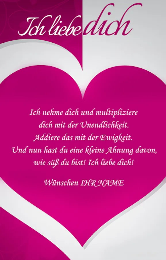 Nothing says "I love you" better than a meaningful picture. With loving pictures that are important to the recipient, you can bring great joy to your loved ones at any time of the day. Regardless of whether you need a suitable "I-love-you-picture" for your partner, mother, father, brother, child or for someone else, you will find it with our pictures.