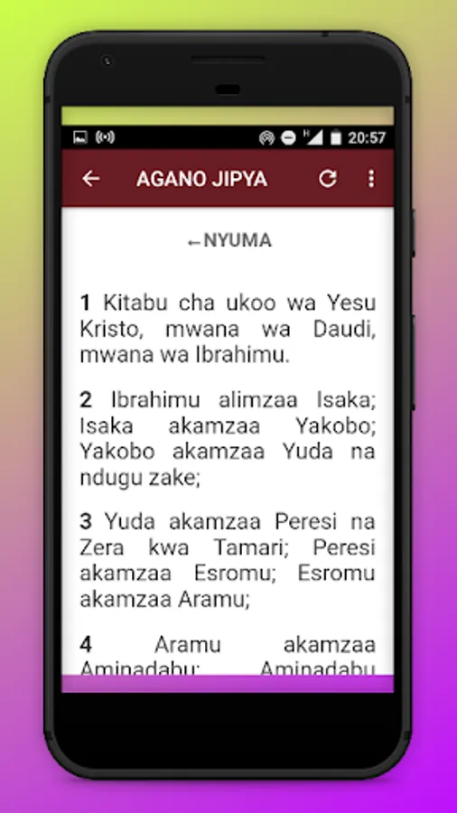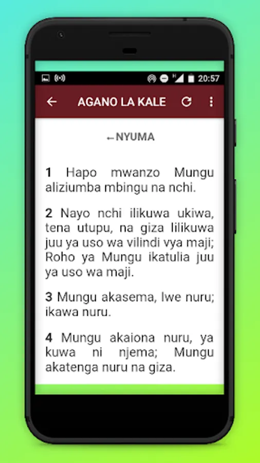 Choose a book from the Holy Bible in Swahili This app contains both the "Old Testament" and the "New Testament". The Swahili Holy Bible contains the sacred texts of Christianity in the Swahili language. Get rich blessings by reading the Holy Bible.
