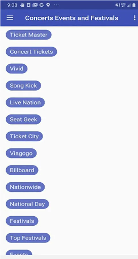 The Best Links to find your Concerts, and Events and Festivals, including: Ticketmaster, Concert Master, Vivid, Song Kick, Live Nation, Seat Geek, Ticket City, Viagogo, Billboard, Nationwide, Festivals, Top Festivals, National Day List, Events, Road Trips.