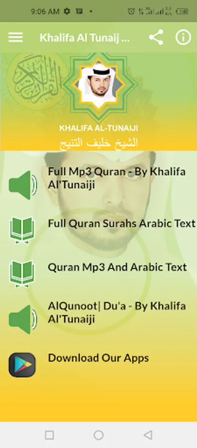 Free Android App encompass complete Quran, Surah's Recitation By Sheik Khalifa Al Tunaij.