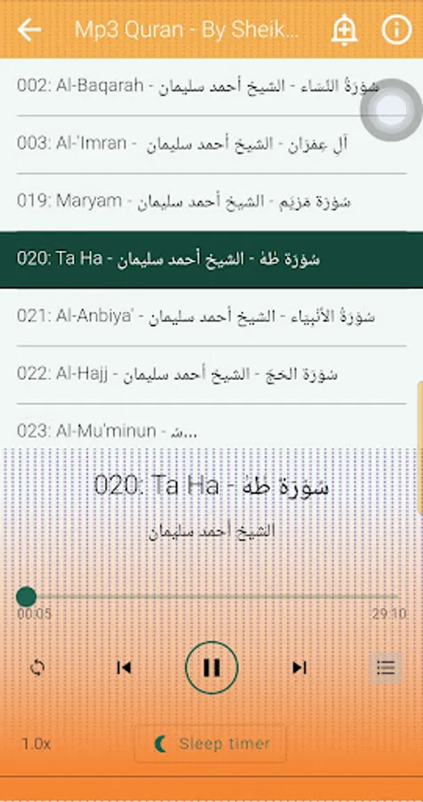 With This app you can listen to all Qur'an Surah's with or without Network Access And No Quality lost.