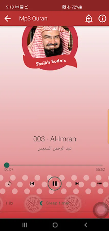 Free Android Application encompass complete Quran Recitation in the Voice Of Sheikh.