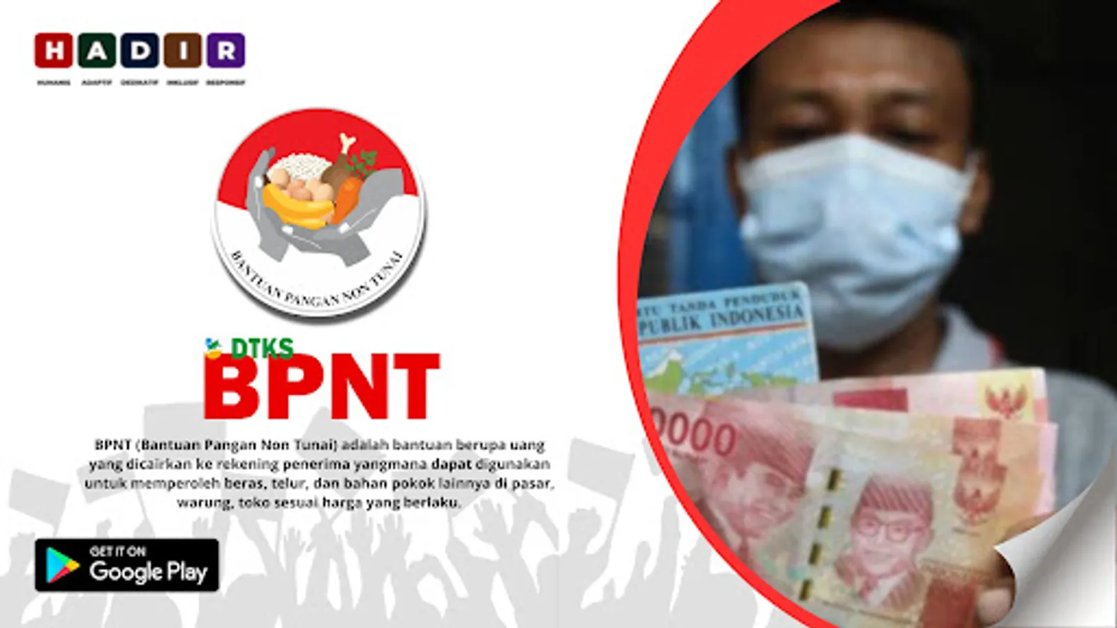 BPNT Social Assistance (Non-Cash Food Assistance) is a social assistance program that is given to Beneficiary Families (KPM) in the amount of Rp. 200,000/month or Rp. 2,400,000/year channeled through Bank HIMBARA and POS Indonesia.