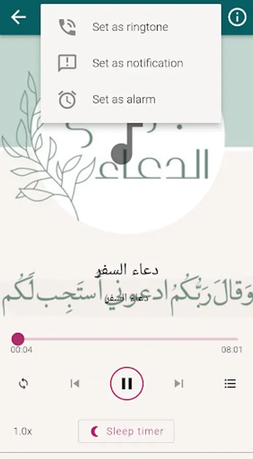 Religious supplications such as the prayer of travel, the prayer of worry, the prayer of relief, the prayer of sleep, the prayer of marriage, the prayer of istikharah and many other supplications