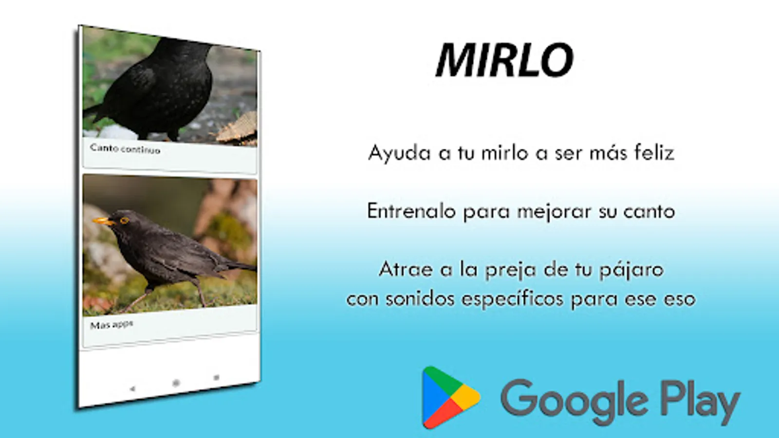 Use it as a claim in the middle of nature or if you have a domestic blackbird, encourage it to sing while you play the audio of this app.