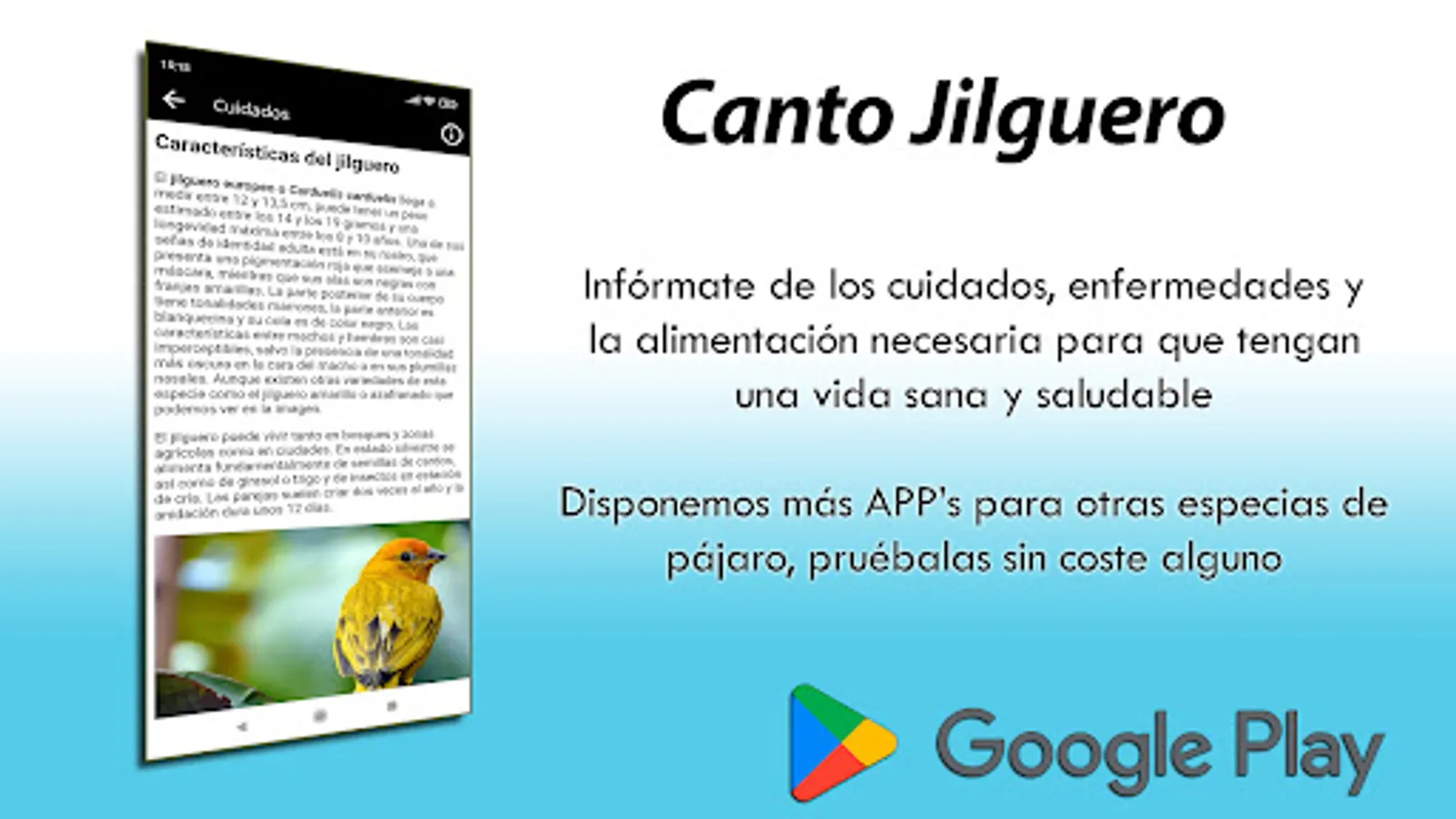 In this app you will find more than 1 hour of the song of this magnificent bird and information on how to care for it and keep your bird healthy.
