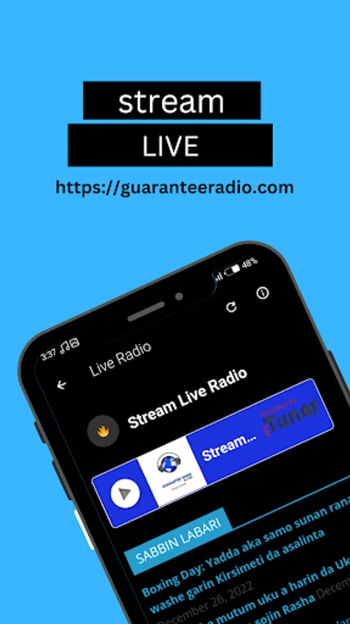 With Guarantee Radio Mobile App you can listen to our Live Programs, podcasts, Interviews, and enjoy a variety of genres of Music.