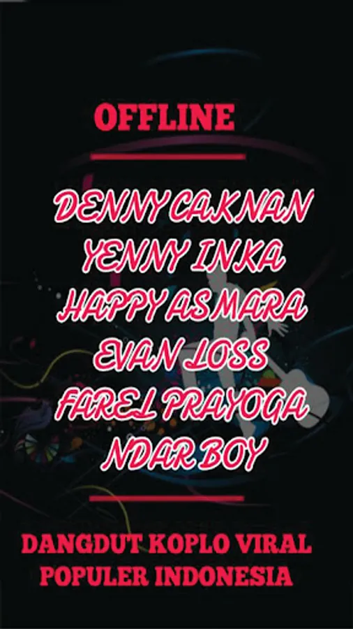 Welcome to Dangdut Koplo Mp3 Offline is an application that contains dangdut koplo songs that are currently viral and popular, for those of you fans of dangdut songs, this application can be the right choice that you can listen to for free, because in this application there are many dangdut songs. The latest Koplo currently sung by: Happy Asmara, Denny Caknan, Yeni Inka and many more, and of course you don't need to hesitate because you can play it offline without internet quota and you can play it anywhere anytime, of course we present it with audio quality crystal clear to spoil the listeners.