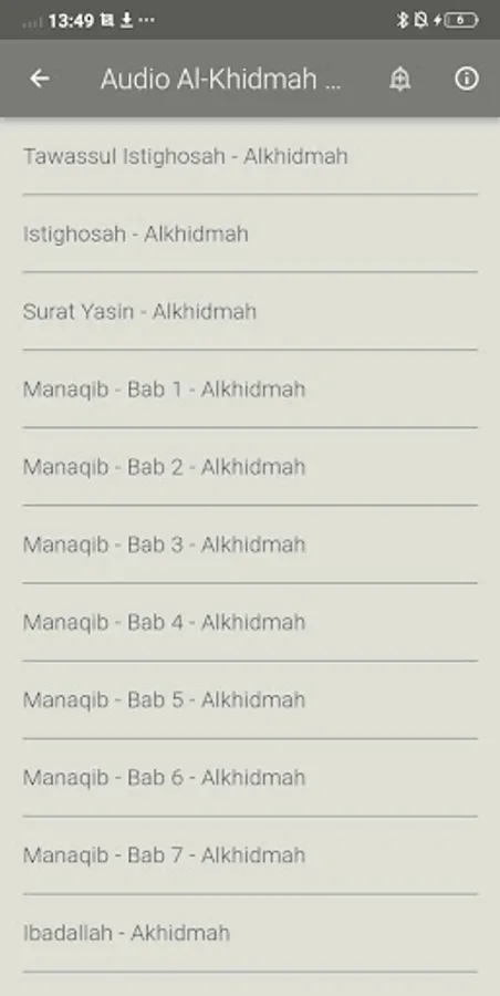 As a teacher is an artist who must be able to create his art in educating. In this digital era, we also represent educators, especially in the field of Islamic boarding schools, presenting the Android-based Alkhidmah Premium application to facilitate teaching and learning activities in Islamic boarding schools, which practice Manaqib Sheikh Abdul Qodir Al-Jailani more. Also as a longing medicine for muhibbin who want to listen to the melodious voice of Manaqib. In this digital age, human beings cannot be separated from the name Cell Phone. There is little hope for the nation's next generation, apart from carrying a cell phone, they can also carry out studies and listen to positive voices. So little description of this. Hopefully it will benefit us all. amen.