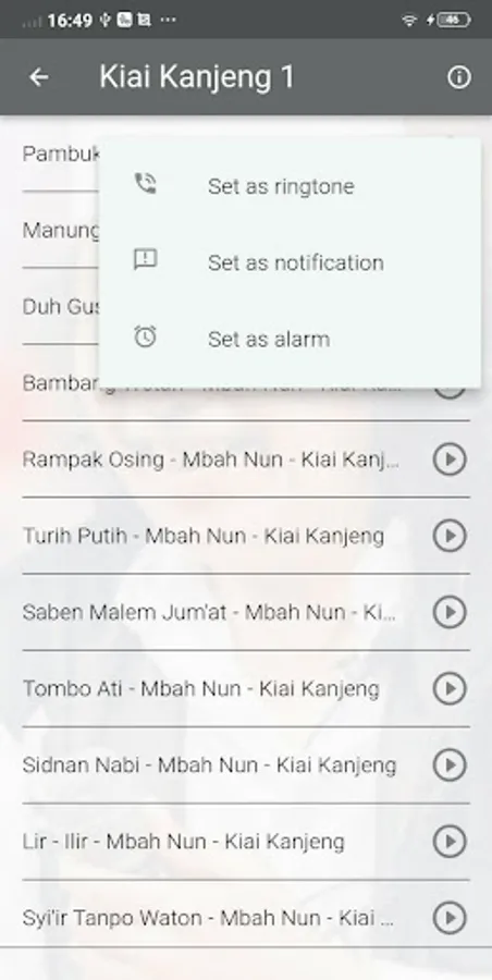 As an art lover. especially music lovers Kiai Kanjeng or Cak Nun. This application is the right companion to enjoy songs from the Kiai Kanjeng Music Band. There are also wallpapers from Cak Nun. That's enough hopefully useful. Amen