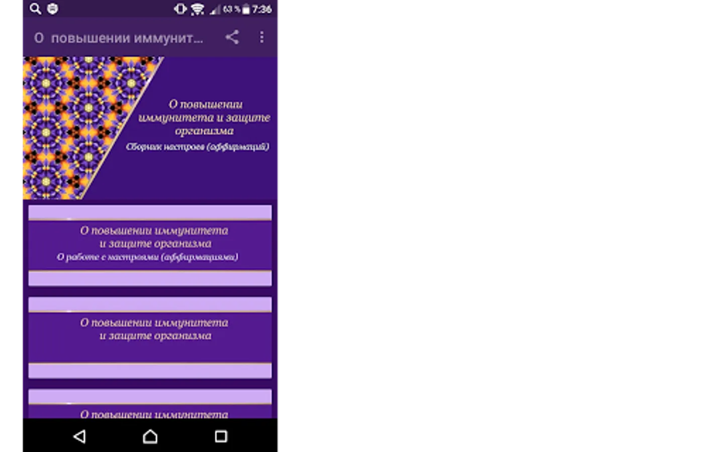 This application is a collection of my author's attitudes (affirmations) that help me in resolving issues in various areas of life. The most exciting issue right now is the pandemic.