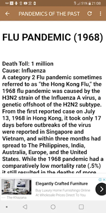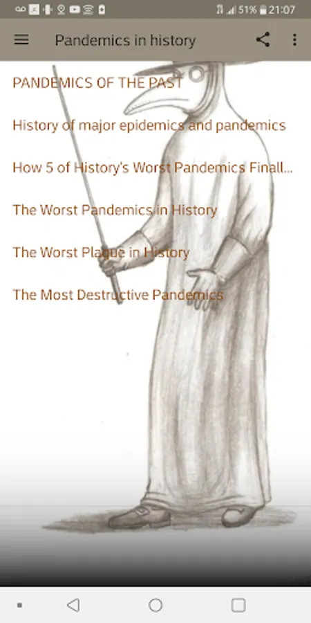 In this app you will find facts and videos about pandemics .
