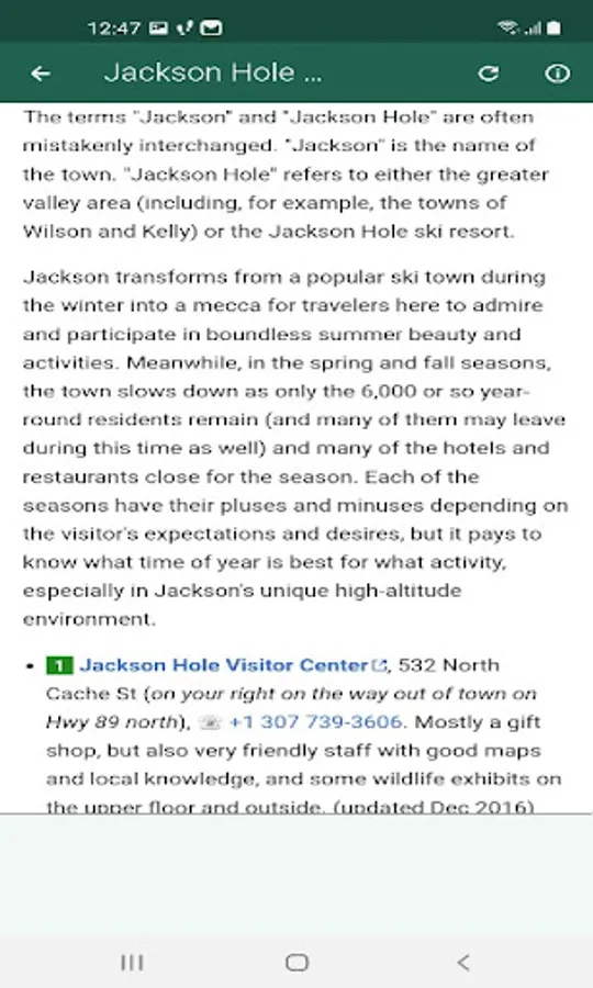 Free Jackson Hole Wyoming Travel Guide Android Application. A Complete Travel Guide for Jackson Hole, it contains: How to get in, Top Landmarks and places to see. It also provides info where to eat and stay. It contains Hotels Search Engine to search and Book instantly the Hotel you want in Jackson Hole. It also contains a photo gallery. You Need Internet connection to use this App.