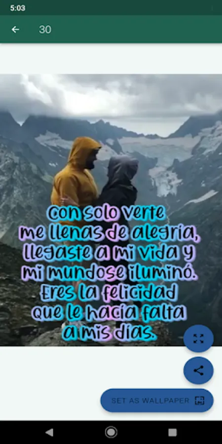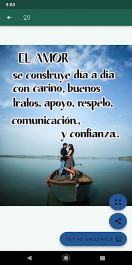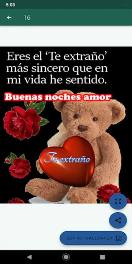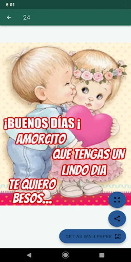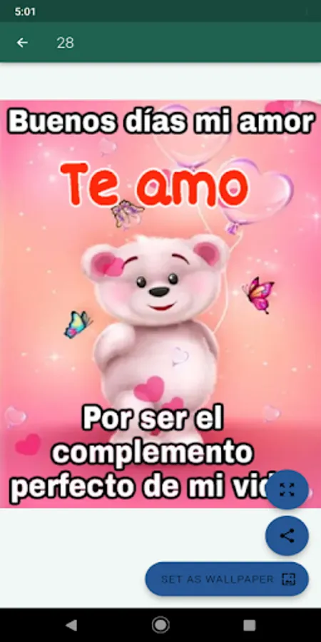Using creative ways to say these magical words can make a nice impression on the person you love and want to make them happy. In this application you will find loving greetings to give every morning and every night to your love. You will also find beautiful images of love with romantic phrases that you can send to that special person in your life, and will help them keep the illusion of love alive.