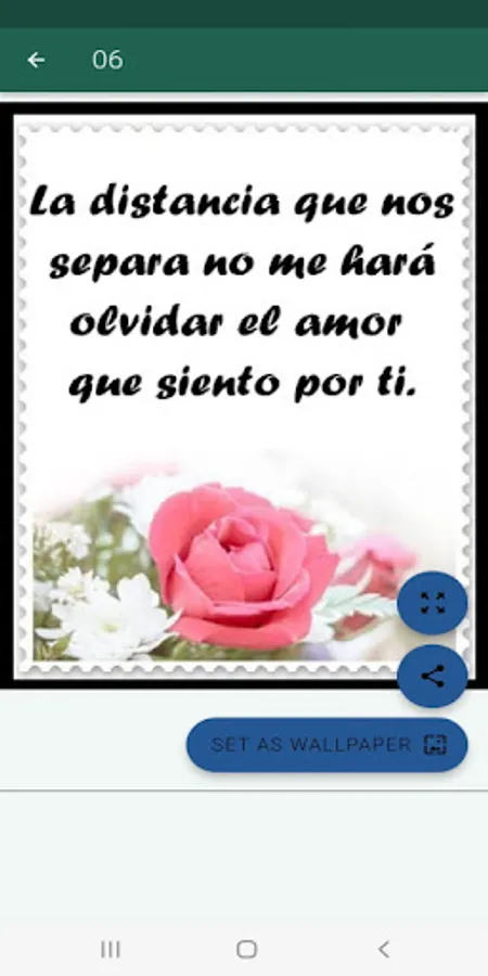 Receiving a nice phrase from the person we love makes us feel especially happy and romantic, it also brightens our day and makes us forget life's problems. With this application you can send romantic love phrases to that person you love so much, they are also accompanied by beautiful flowers, which give them a magical touch.