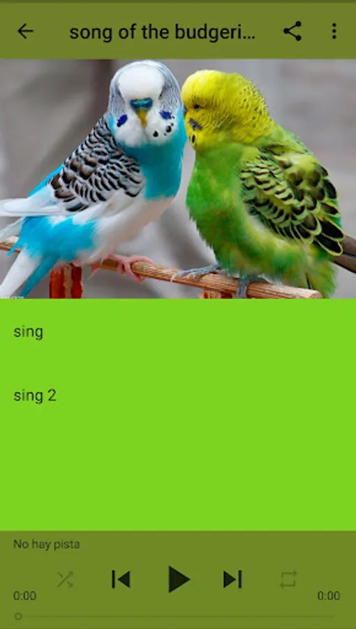 The application where you can listen to songs to enjoy or educate your parakeet. You can also set it as an alarm sound or share it with your friends.