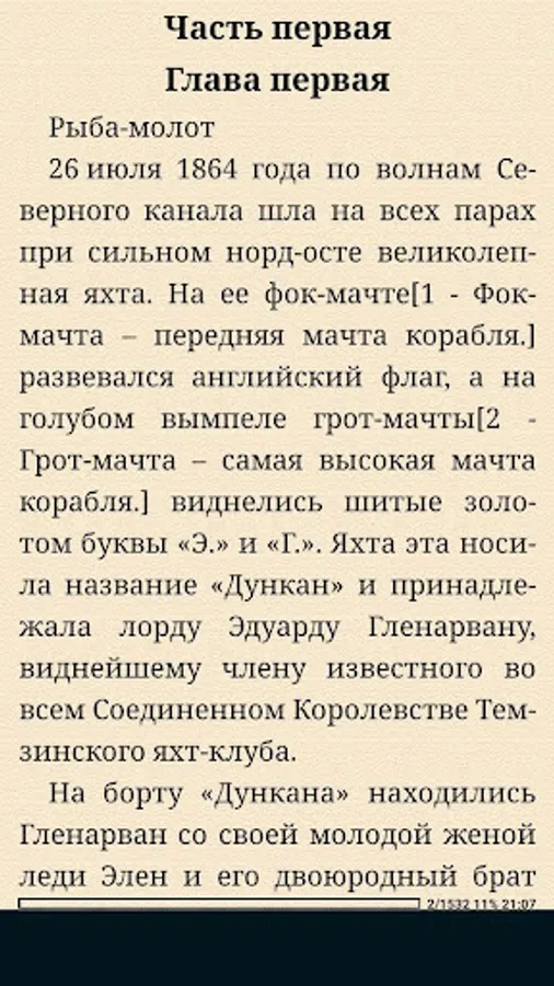 The noble Lord Glenarvan and his Helene wife scattered geographer Paganel, a brave sailor Dzhon Mangls, the Major Mac Nabbs Children of Captain Grant - Mary and Robert - travel by ship around the world, crossing Patagonia, Australia, New Zealand, saved from the flood, face convicts, are captured by cannibals, but still find a shipwrecked Harry Grant.