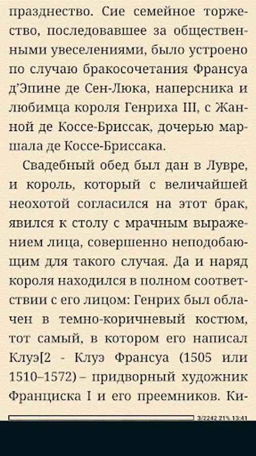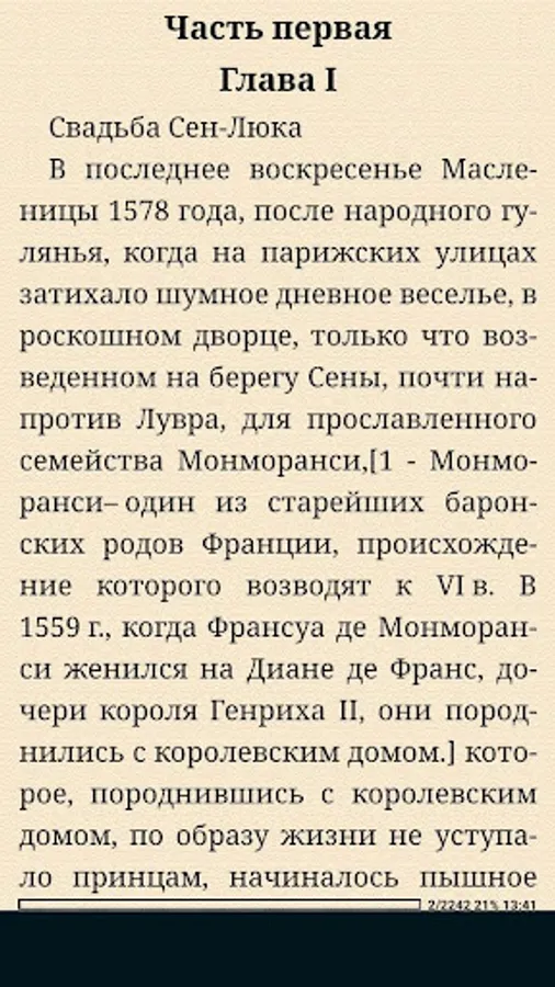 The novel of the famous French writer Aleksandra Dyuma takes place in the era of the Huguenot wars, during the reign of Henry III. But historical events - described clearly and persuasively - are only a background of complex love affair. Deceit, corruption and hypocrisy of the royal court the author contrasts the generosity, sincerity and faithfulness fearless Comte de Bussy and his beloved Diana.