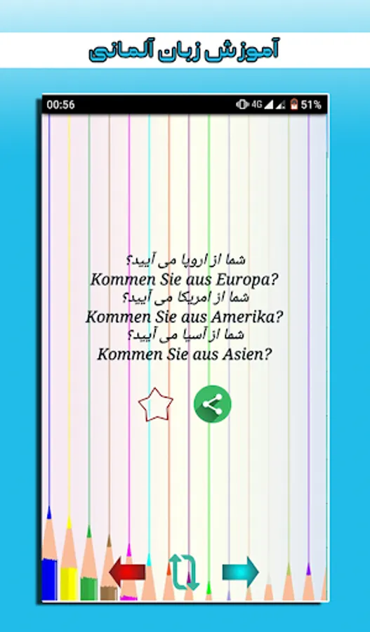 Learning German is related to your ability to memorize German words and vocabulary, because German vocabulary is very low so you have collected the most common words, phrases and sentences in this program, as 90% of them are used every day in German with conversations, daily use, School, Caro etc. is for those who are interested in learning German easily We find them very useful in our programs to enable them to learn German without the need of a teacher and through learning and teaching the German language without internet using Farsi German translation any Translating from Farsi to German through lessons So the language you Gvymkh At this stage, let alone its laws or anything else, but to keep the very first words written and posted. Accordingly, the Inbound was created to guide you to success