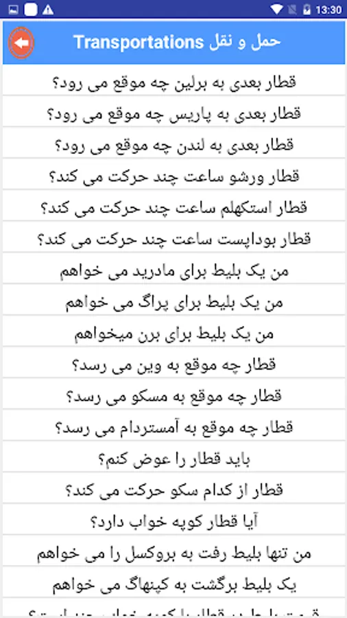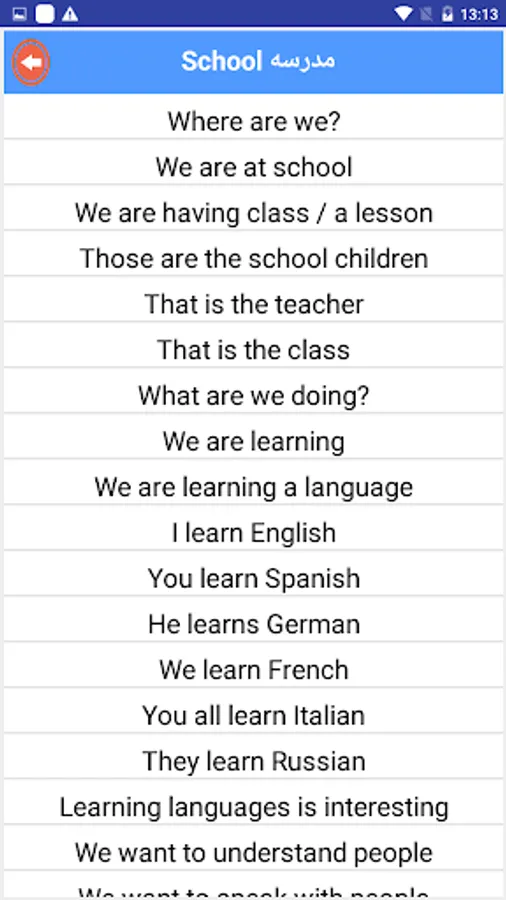 The application of language learning English and persian. audio is a comprehensive application that contains several sections and several different conversations depending on each case, all this conversations on to facilitate learning without the Internet as this application also contains a simple and easy ways to add new communication easier to pronounce words.