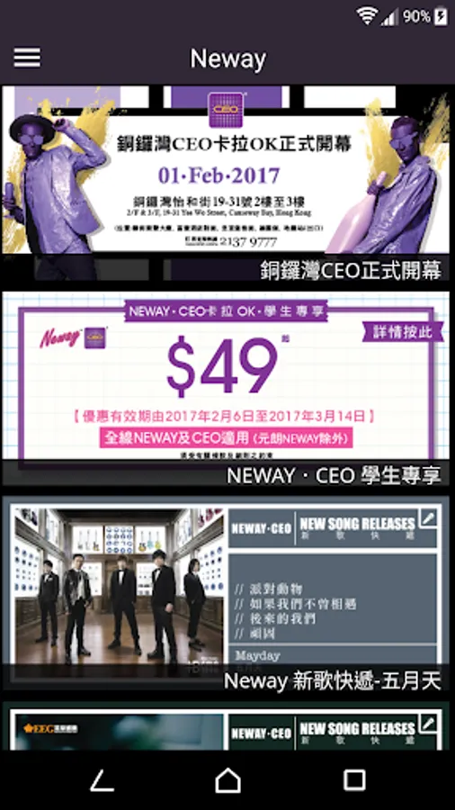 The "Neway App" is an application proudly presented by Neway Karaoke Box. Combining all the features of "Neway Remote" and "Neway K-Fun" in a single application, you can select the karaoke songs while checking out our latest promotions and latest K-Fun rewards anytime.