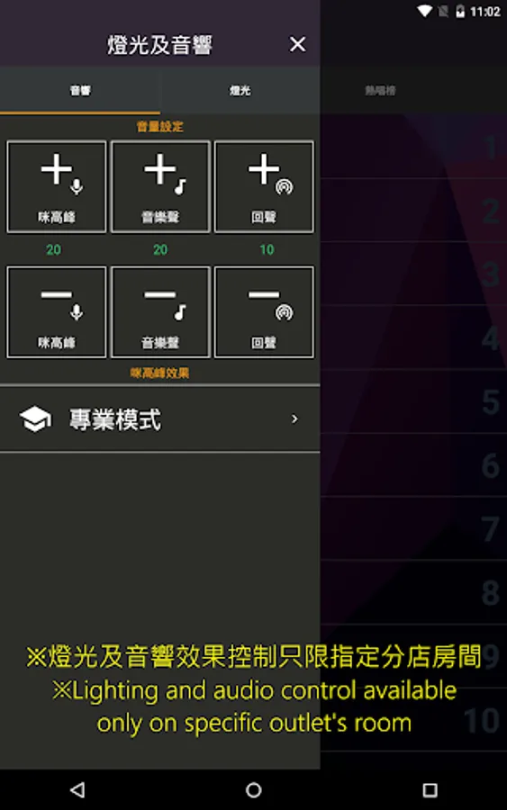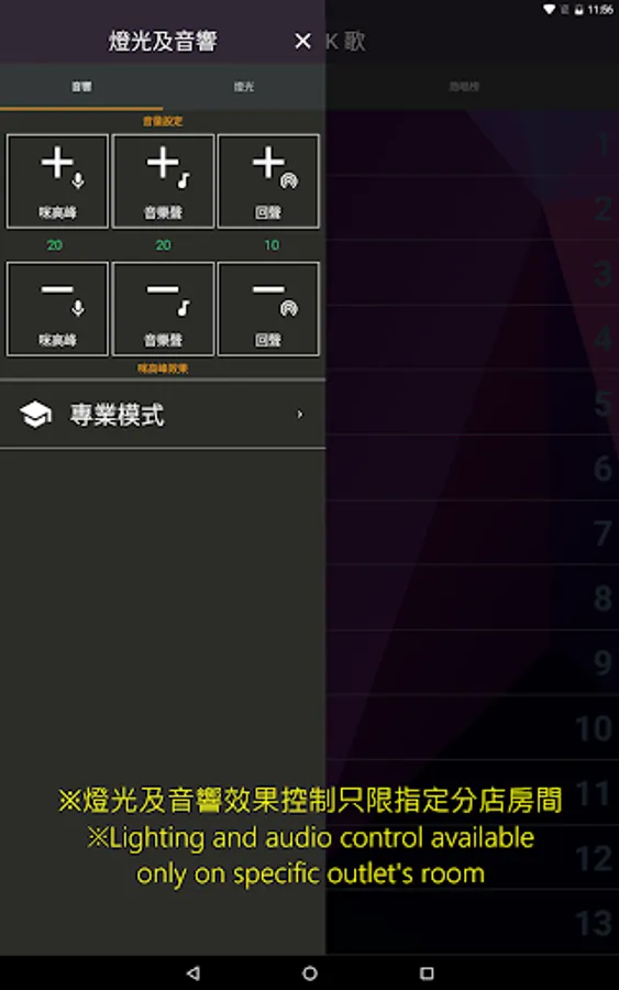 ●By connecting to karaoke room with this application, you can use your mobile device to control our karaoke song system and enjoy the following function: