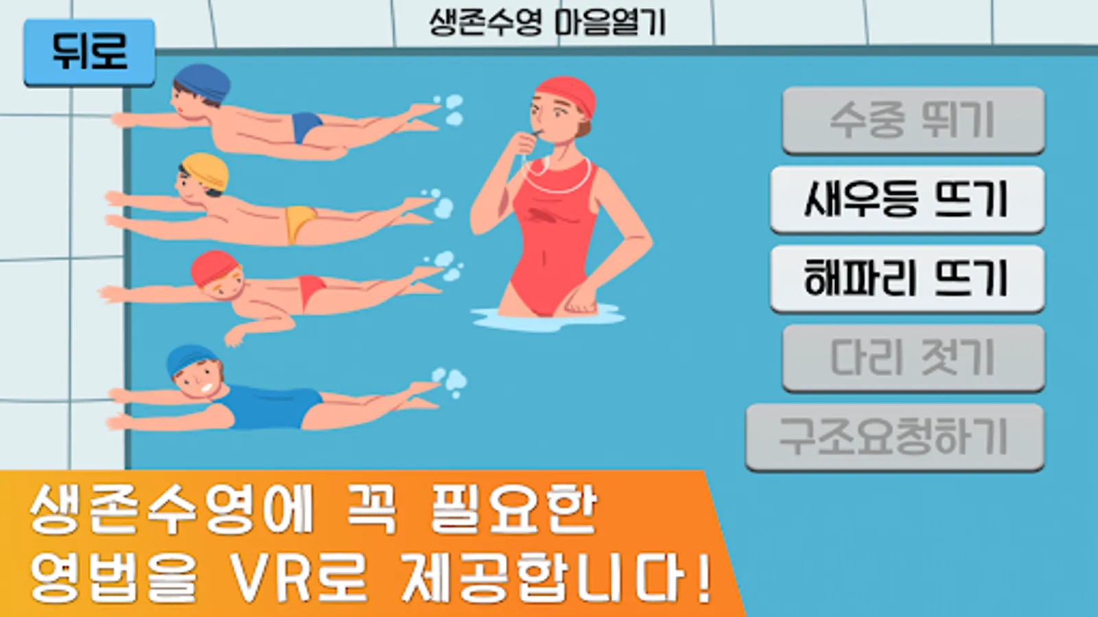 Because survival swimming can be learned in a short period of time, even in a situation where it is impossible to go to the swimming pool, only indirect experience education using VR can have a significant educational effect. Accordingly, the Korea Swimming Education Association and NEWBASE have jointly developed [Survival Swimming VR].