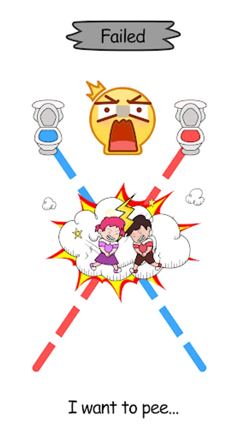 2. The boy and girl run to the toilet along the line, and the game is successful.