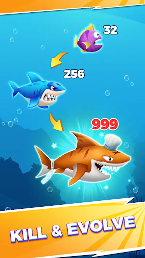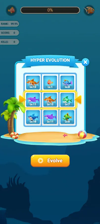 Slide on the screen to evolve as high as you can, but remember not to confront the large fishes.