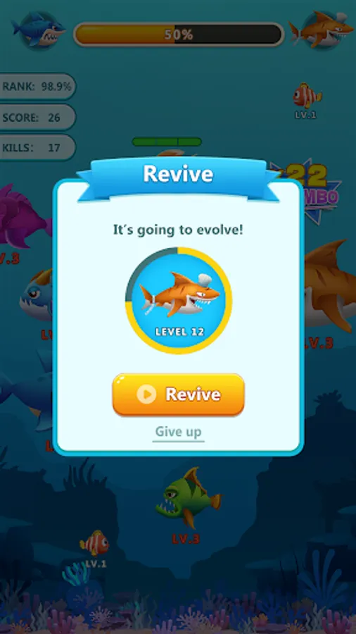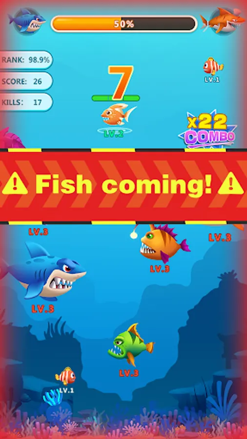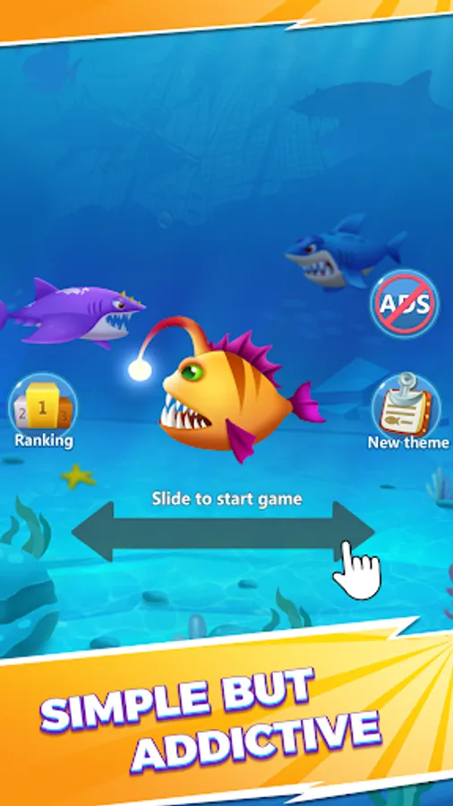 In Fish Go Evolution, you can evolve your fish by just sliding to devour lower-level fishes while avoiding larger fishes. Survival in this ocean with rising waves is not that easy.