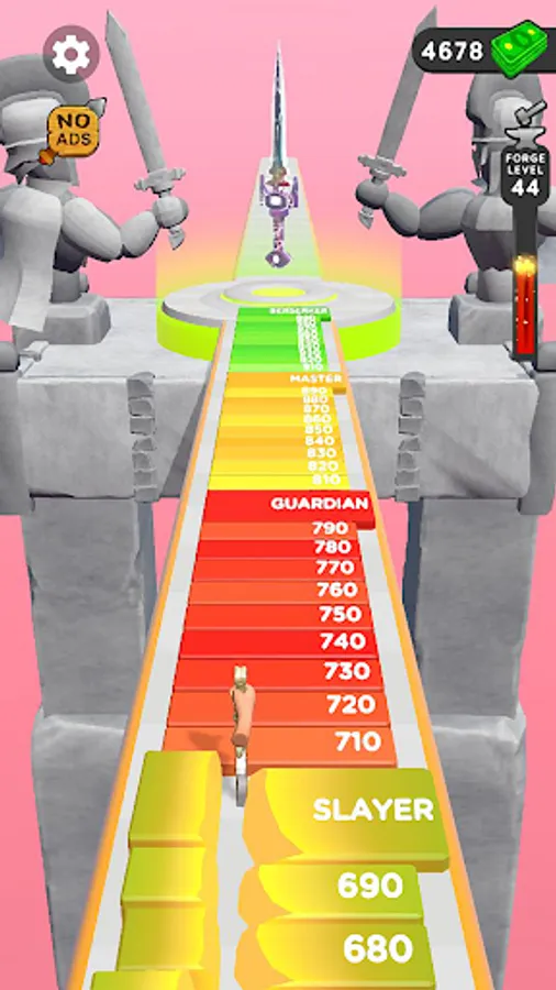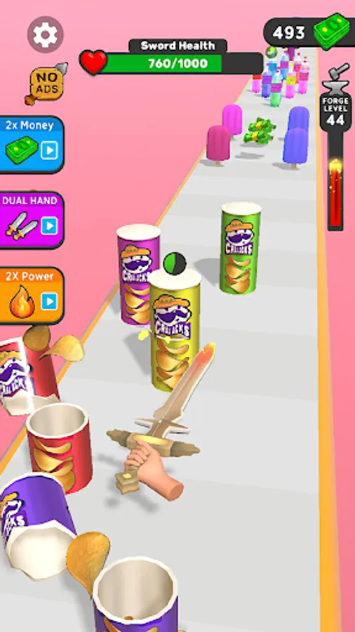 Once you craft your sword, take it by hand and cut all obstacles until you reach the end. Watch out for the sword health and power while you play. When it reaches zero, a broken sword shall be left and you cannot continue playing.