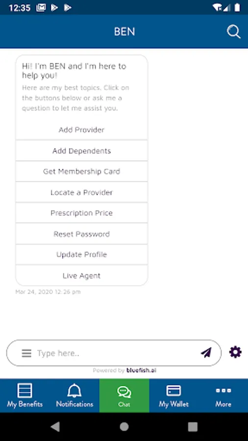 CHAT WITH BEN: As your Artificial Intelligence-enabled Benefit Expert Navigator, BEN guides your benefit experience, providing the information and answers you need, when you need them