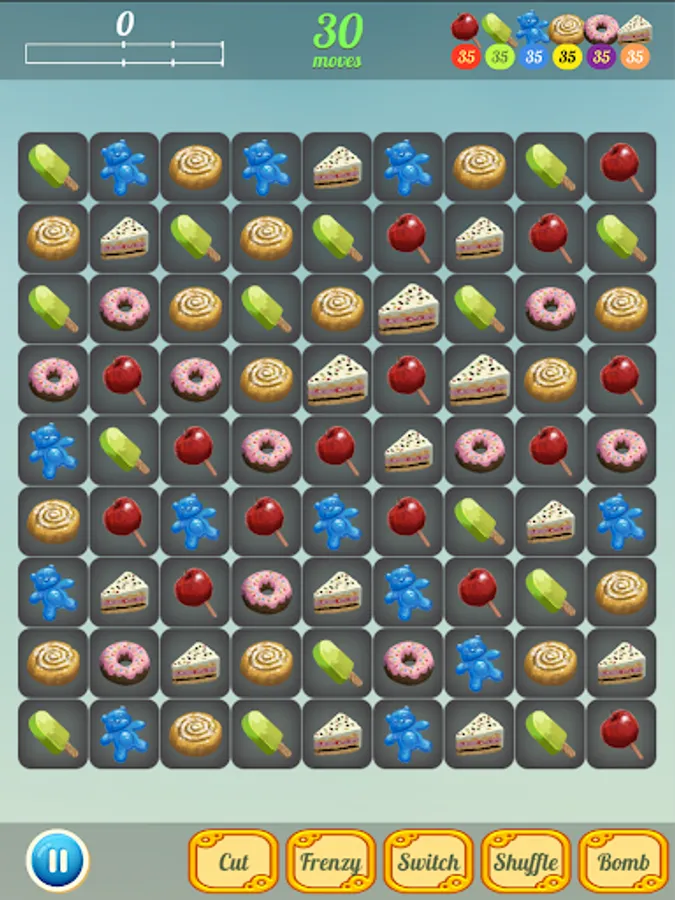 During a "sweet collector" level you must collect the indicated number of each type of sweet to complete the level.