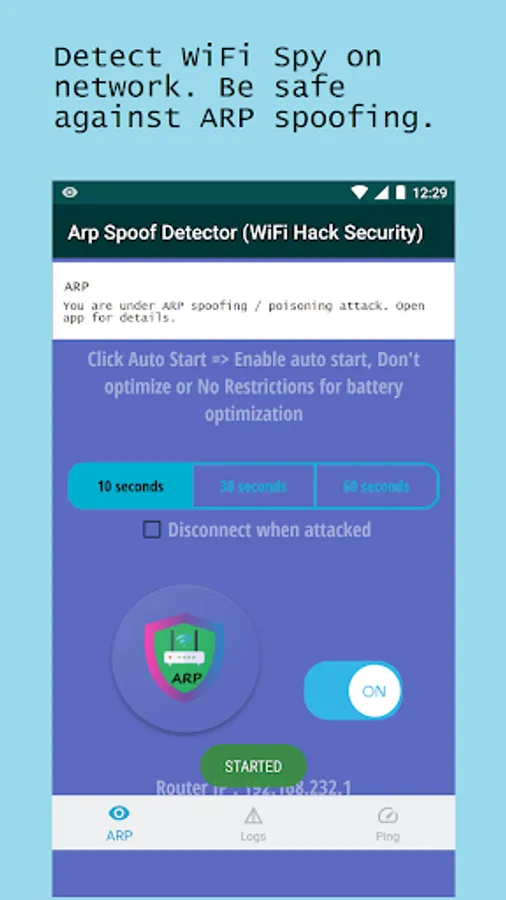 Protect WiFi by detecting ARP spoofing or ARP poisoning attacks. Use a free against spoofing tool to protect your network. Reliable protection from spying. Maximum WiFi security against spying hackers.