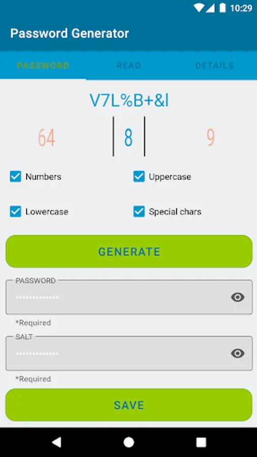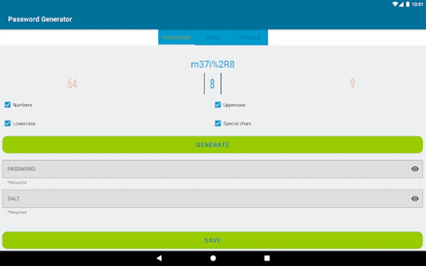 Password generator app generates a password between 8 and 64.