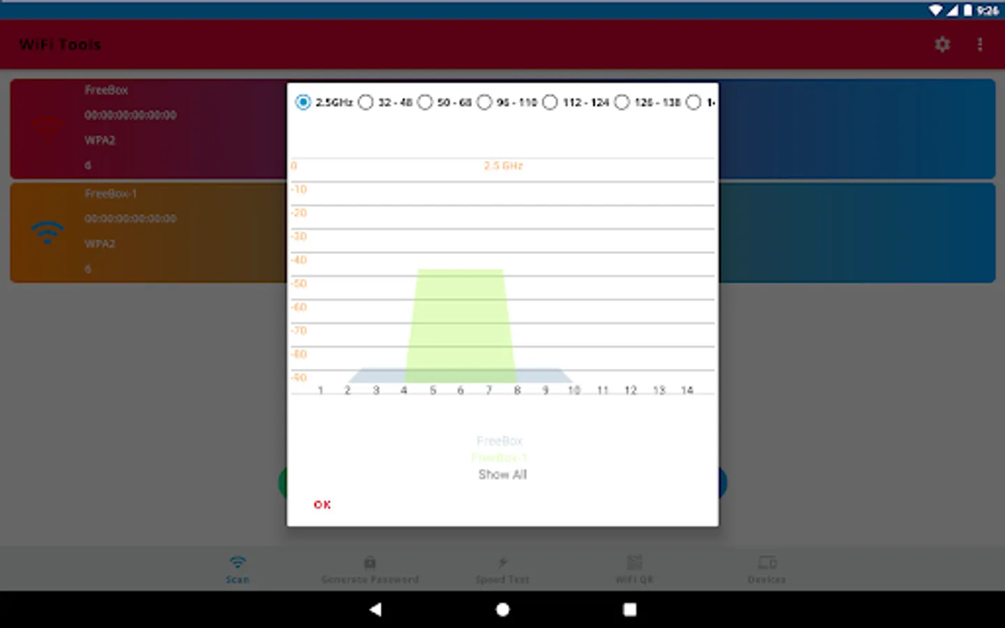 With WiFi Tools : Network Utility scan and learn WiFi details which are vendors, channel and etc.