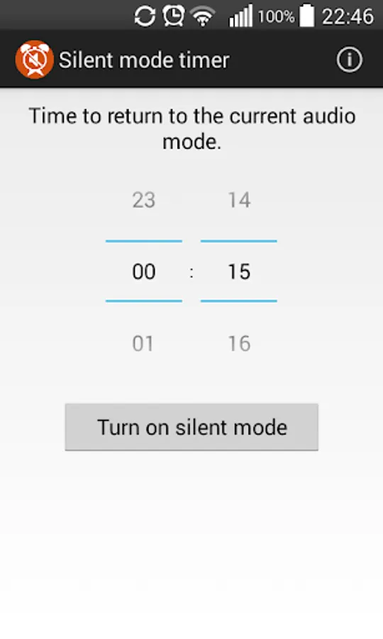 The application is designed to temporarily turn silent mode, the timer returning previous sound scheme (vibration mode or full volume).
