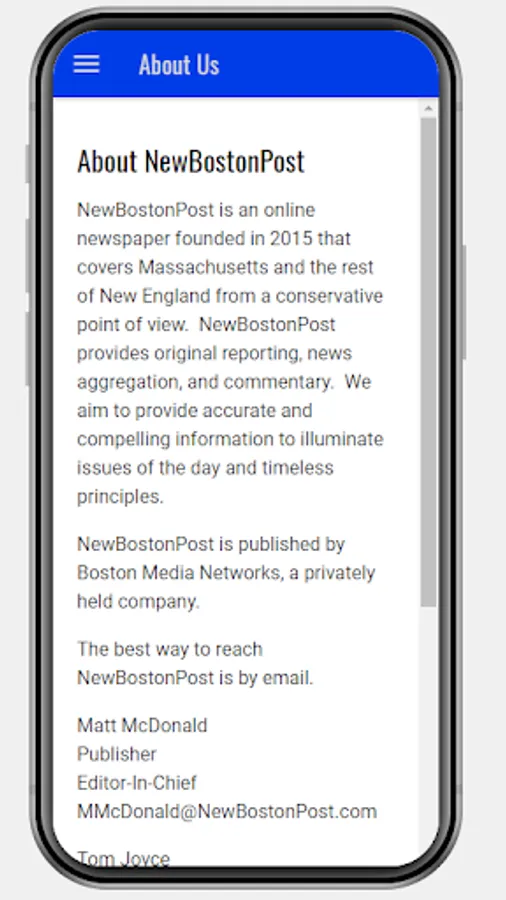 NewBostonPost is an online newspaper founded in 2015 that covers Massachusetts and the rest of New England from a conservative point of view. NewBostonPost provides original reporting, news aggregation, and commentary. We aim to provide accurate and compelling information to illuminate issues of the day and timeless principles.