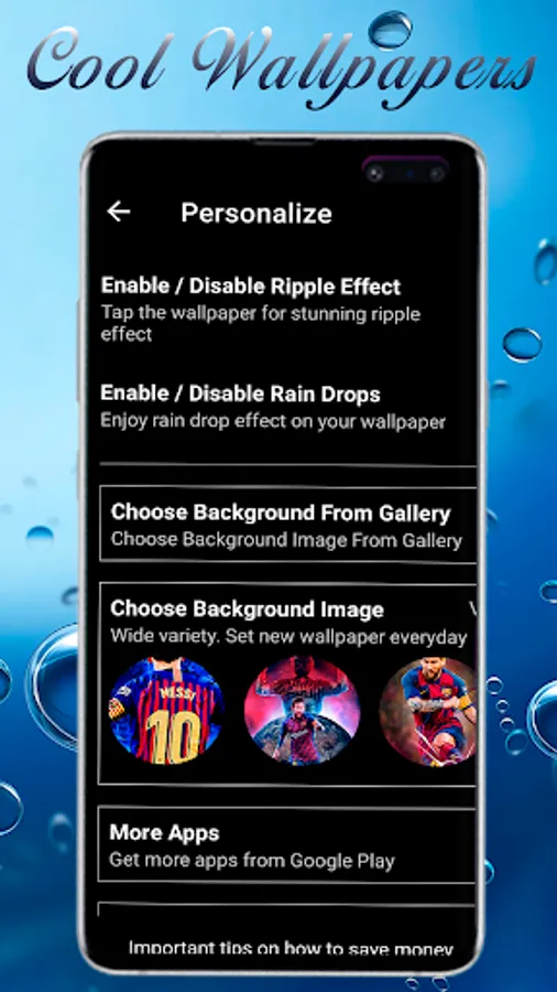 Now, if you need to change your style, you can just find a great example of cute, cool or kawaii girly, anime, teen, kpop, dope amd glitter 4K LIVE WALLPAPERS WITH WATER RIPPLE EFFECT here! You can customize this application very easily, without wasting battery charge and memory space!